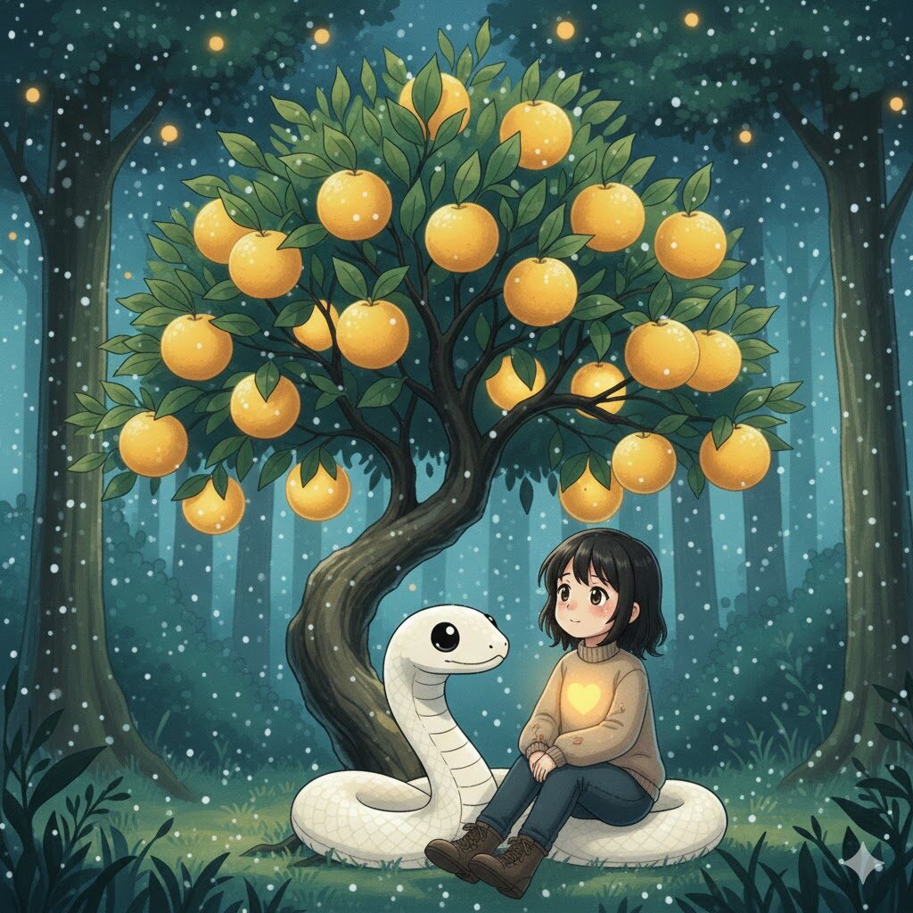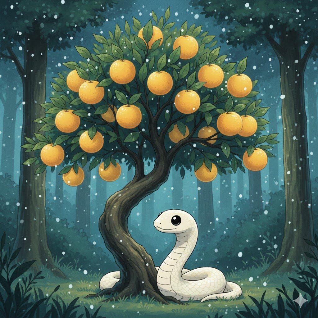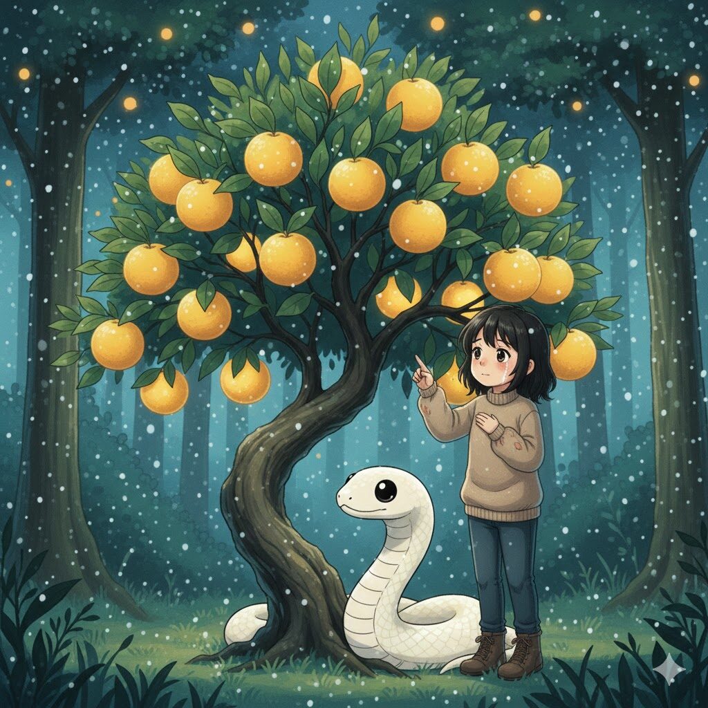 森の奥で、一本のたちばなの木が、