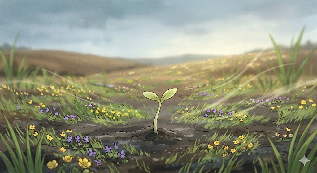そして、光が、その芽をやさしく照らしました。