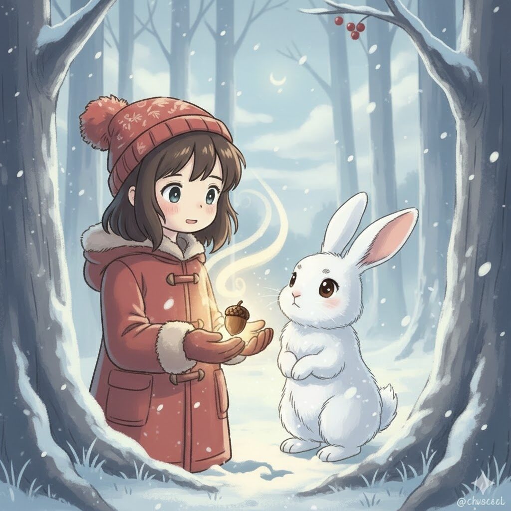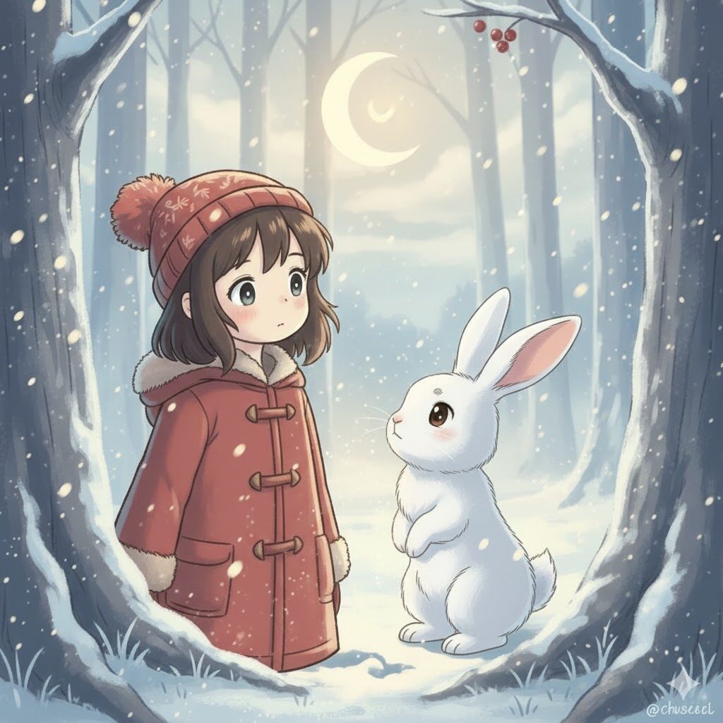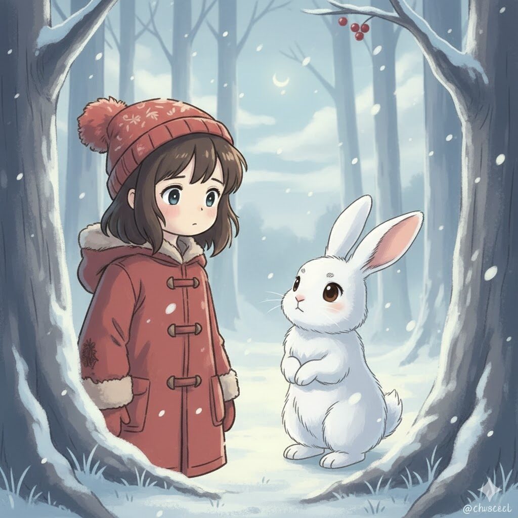 そう言って卯うさぎは、雪の森の奥へすっと消えていきました。