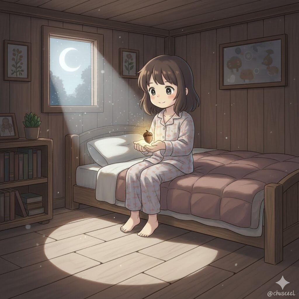 その夜、下弦の月の光は、みおの部屋をやわらかく照らしました。