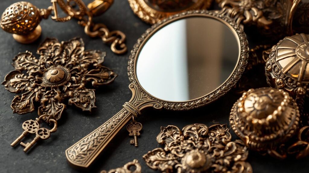 真鍮・ゴールドカラーの小物/手鏡/鍵のチャーム。