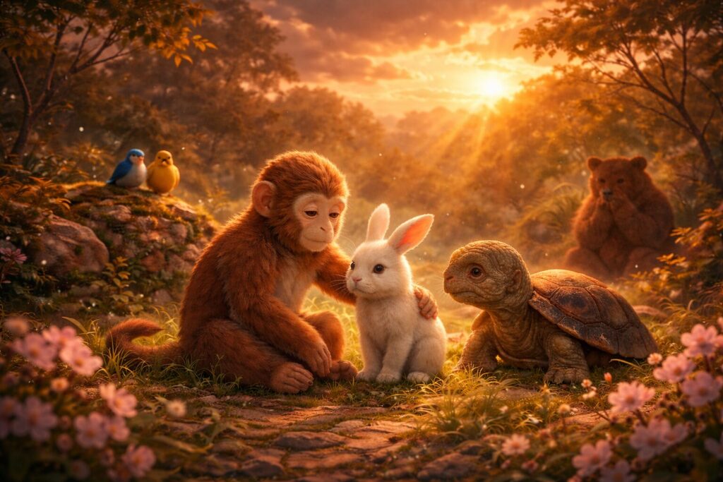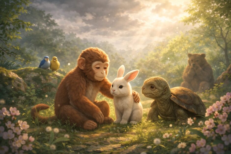 うさぎは小さく笑い、小鳥はそっと羽を動かし、