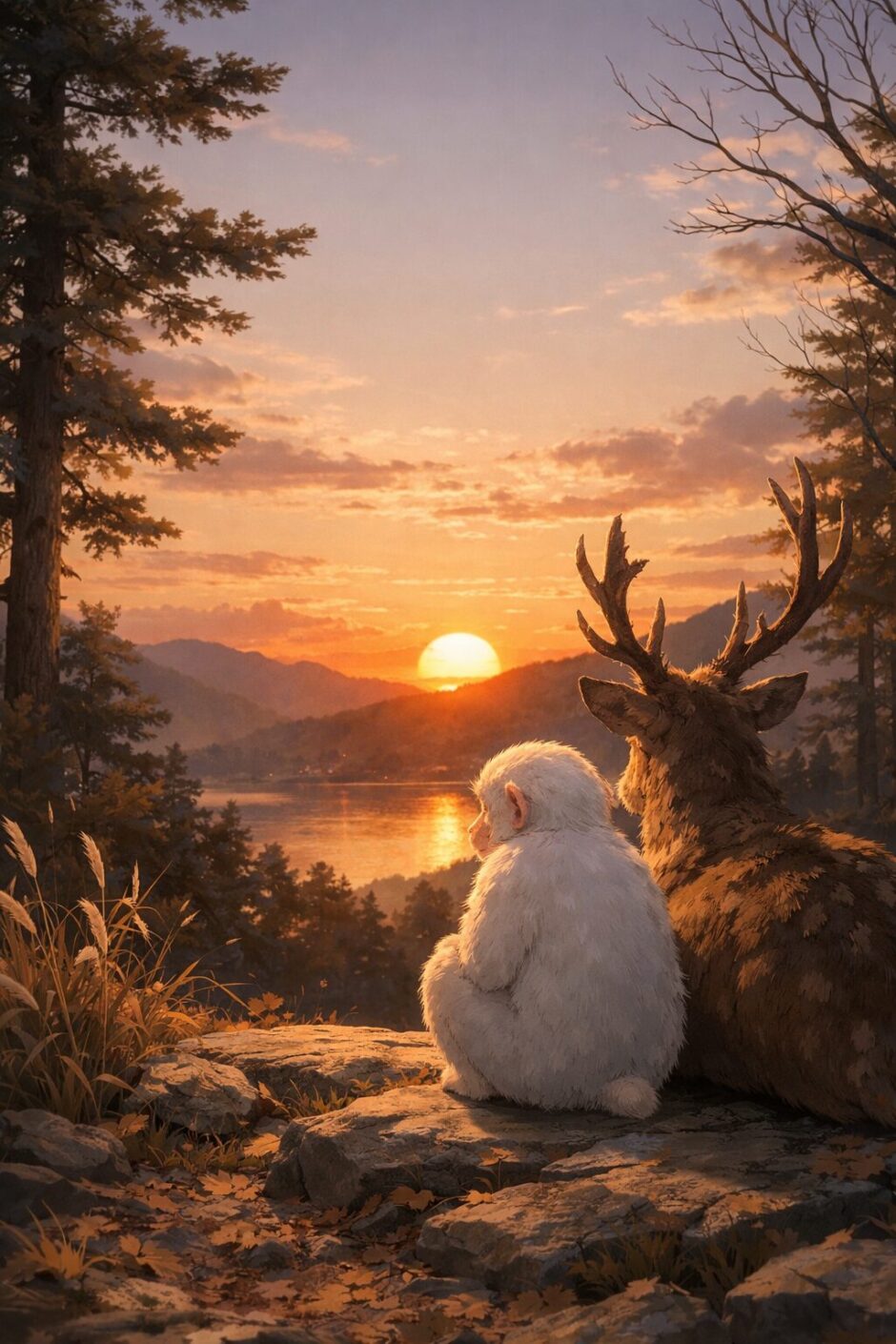 夕陽が山の向こうに沈むと、森は静かな闇に包まれました。