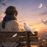 ましろは、初めて足を止め、じっと夕陽を見つめました。