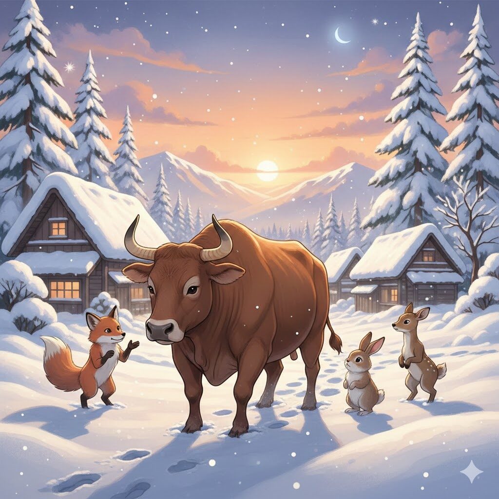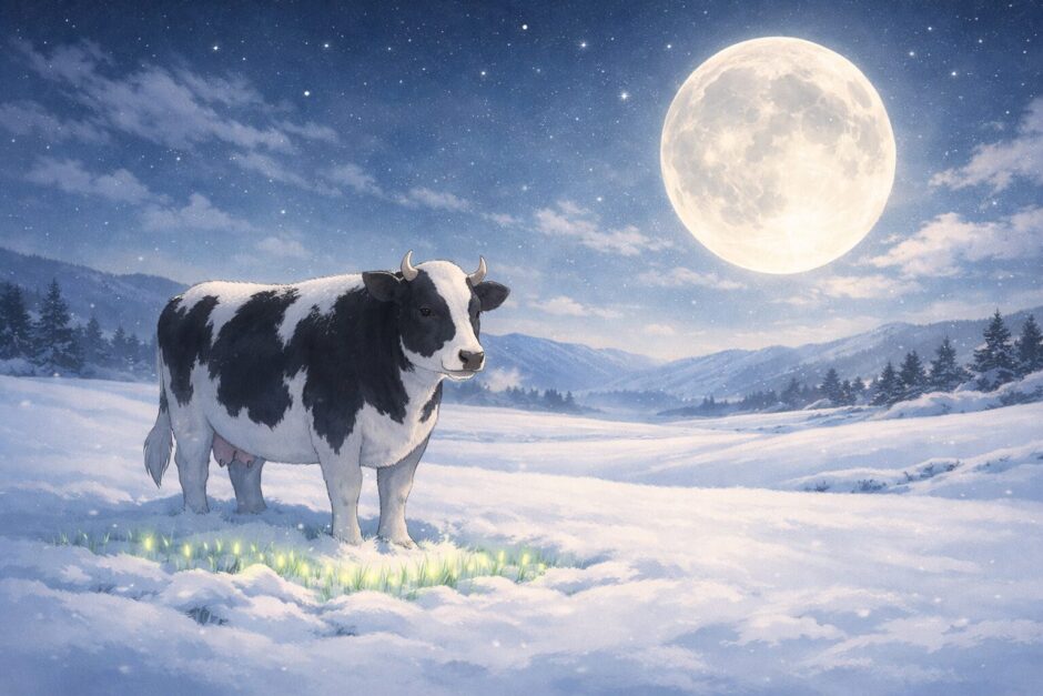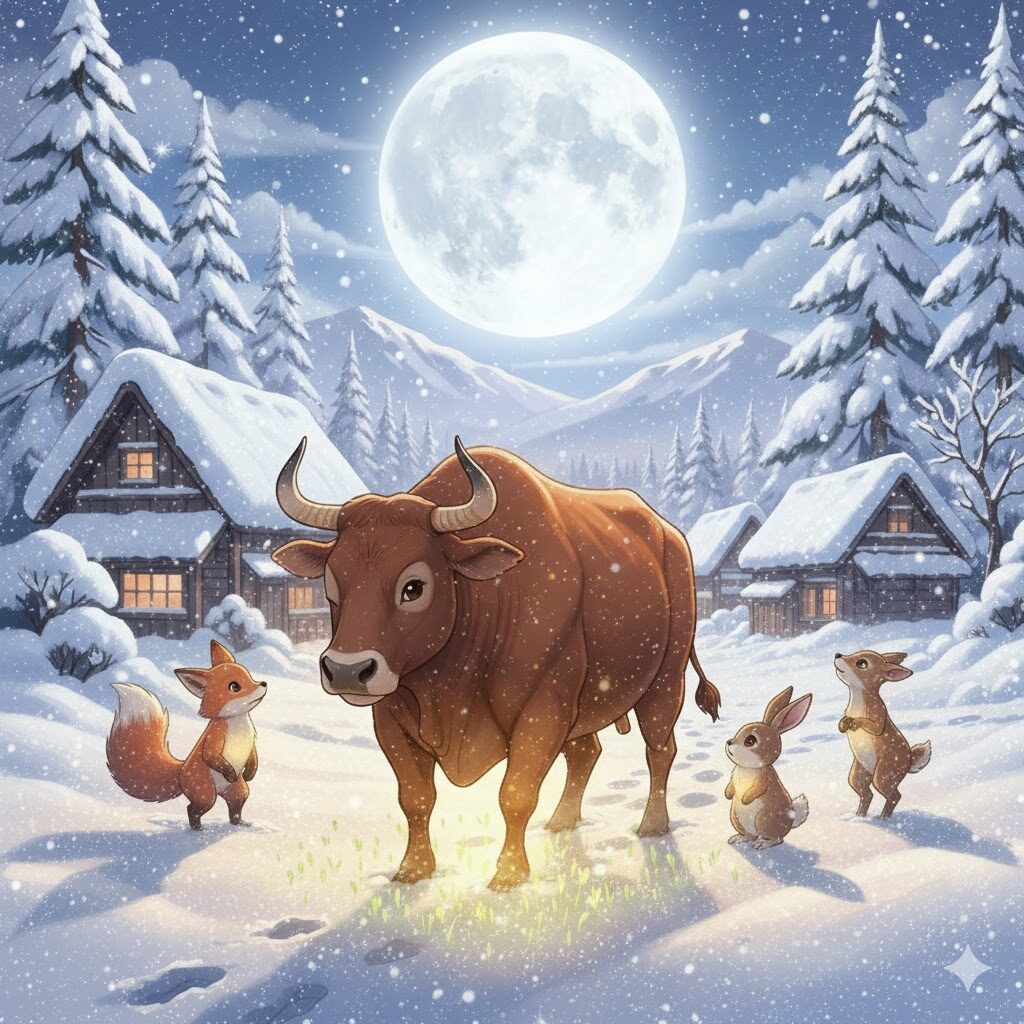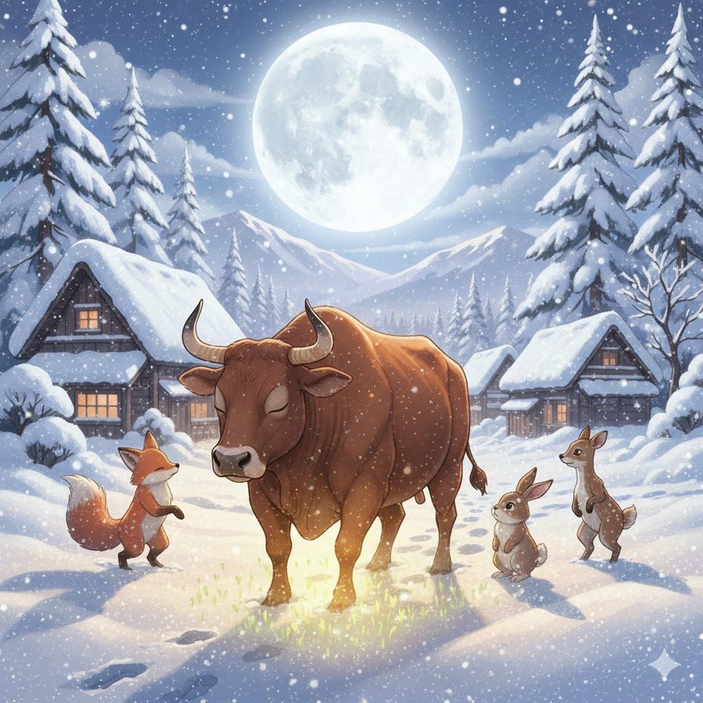 月の光が雪を照らし、畑は銀色にきらめきました。