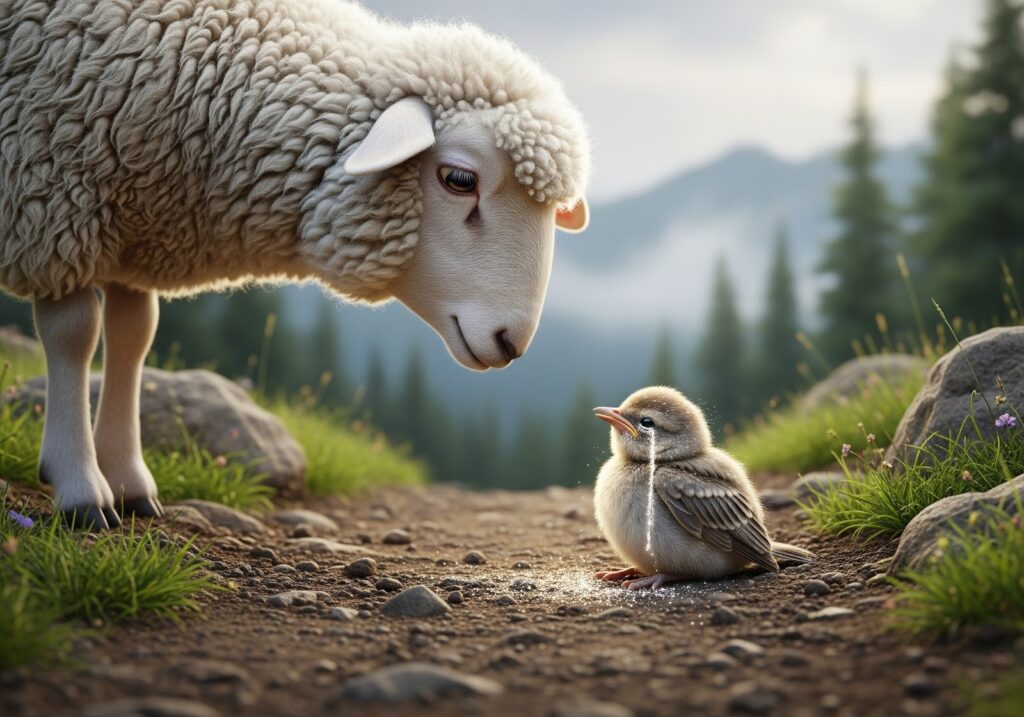 道の途中で小さな鳥の子が泣いているのが見えました。