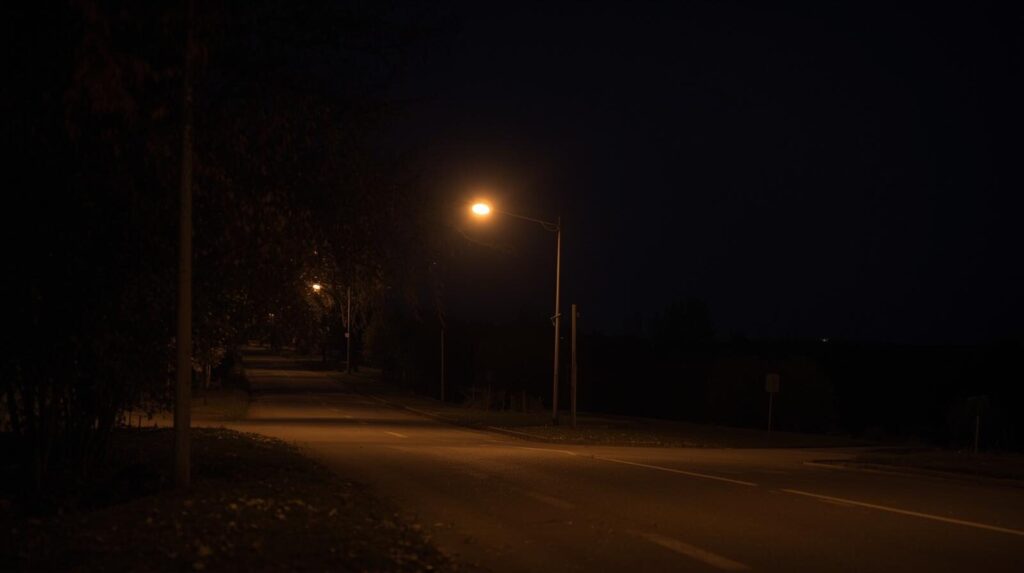 窓辺の灯りも、どこか心細そうでした。