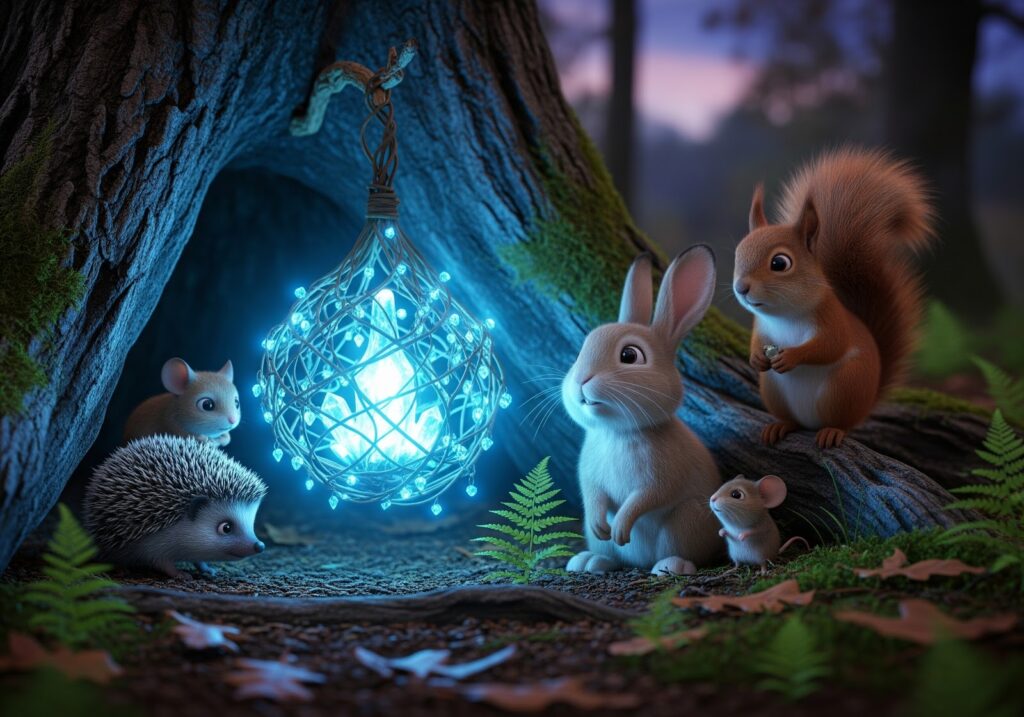秋の夜のはじまり、森の奥では木々がざわめき、