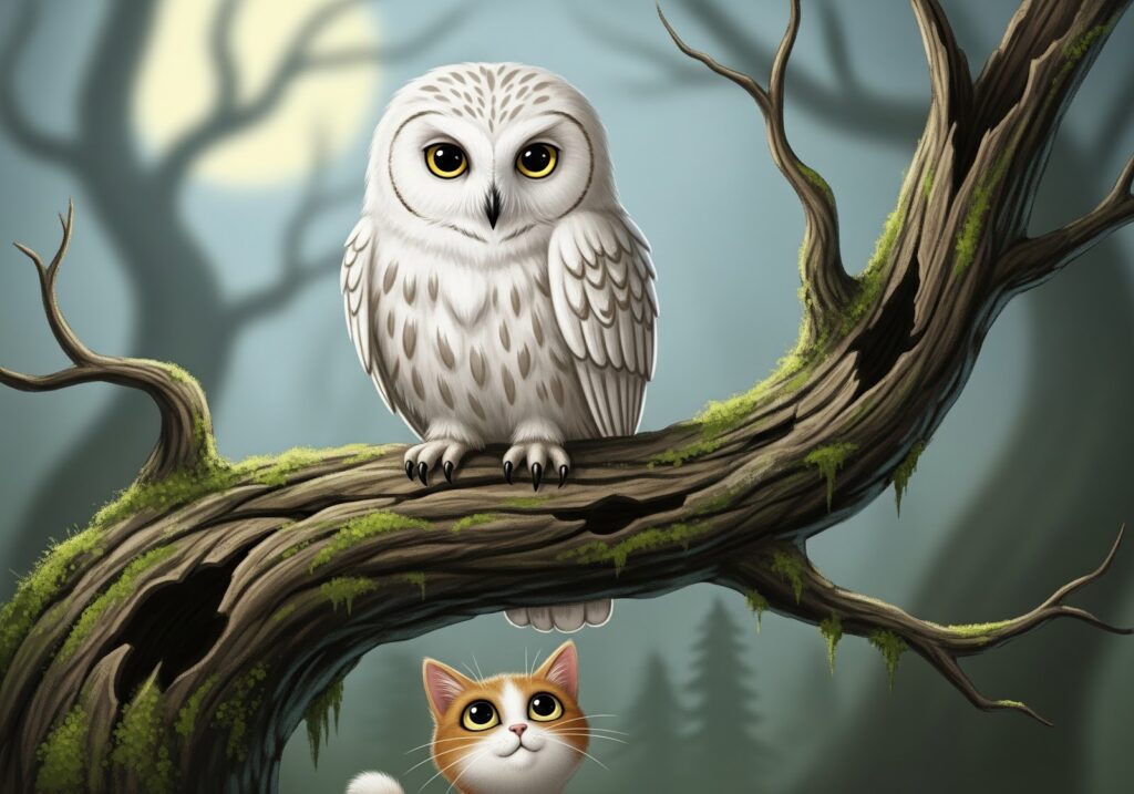 古い木の枝にすわる白い梟(ふくろう)でした。