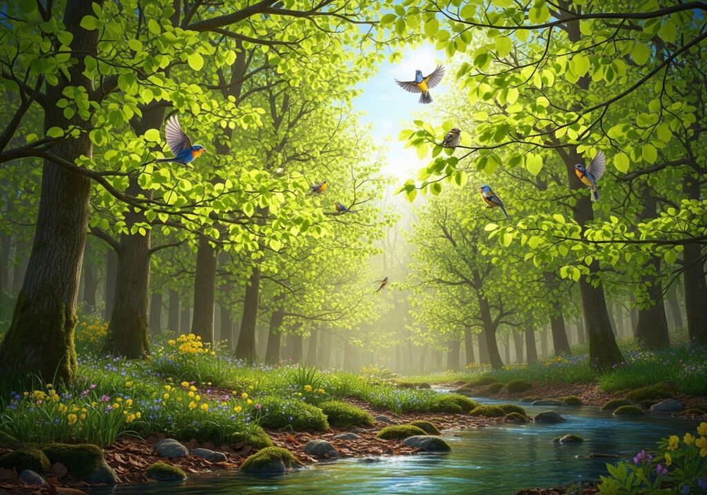 春になったとき、森の木々が一斉に芽吹き、
