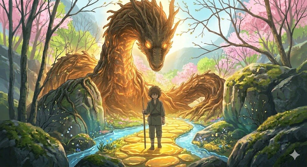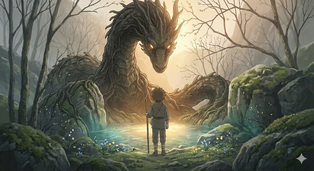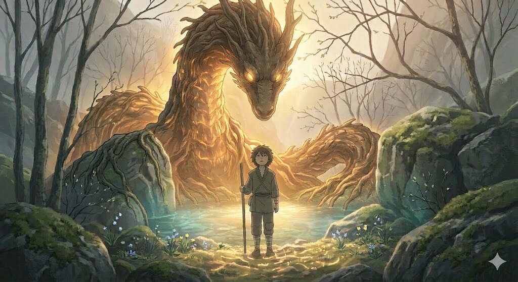 土の中に眠りながら、水を抱え、静かに生きる龍。
