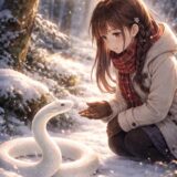 周りの動物たちは、冬の寒さに身を寄せ合いながら