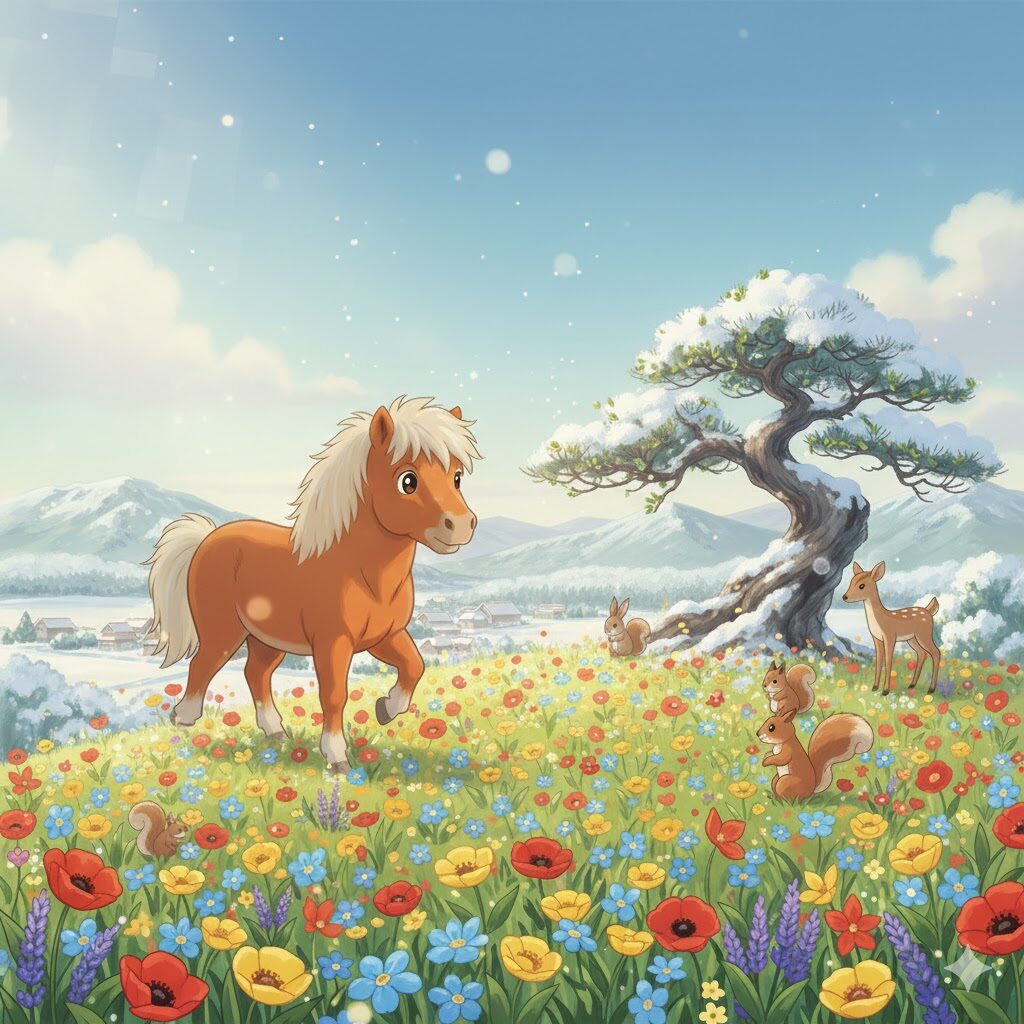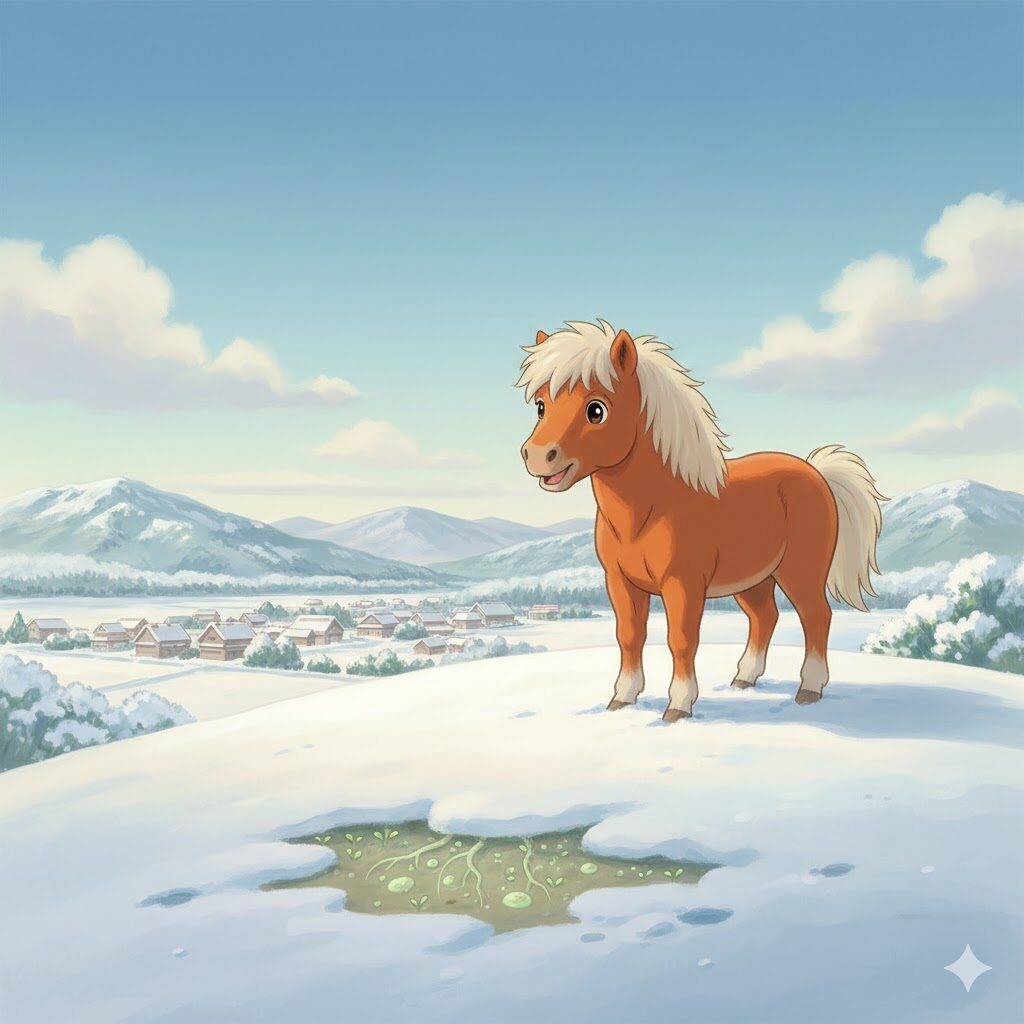 その村に、あかるい栗色の小さな馬が住んでいました。