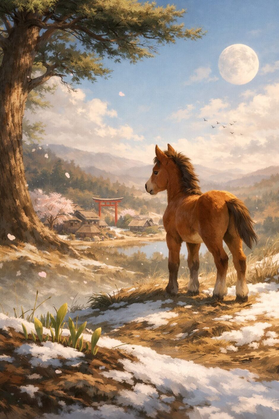 その村に、あかるい栗色の小さな馬が住んでいました。