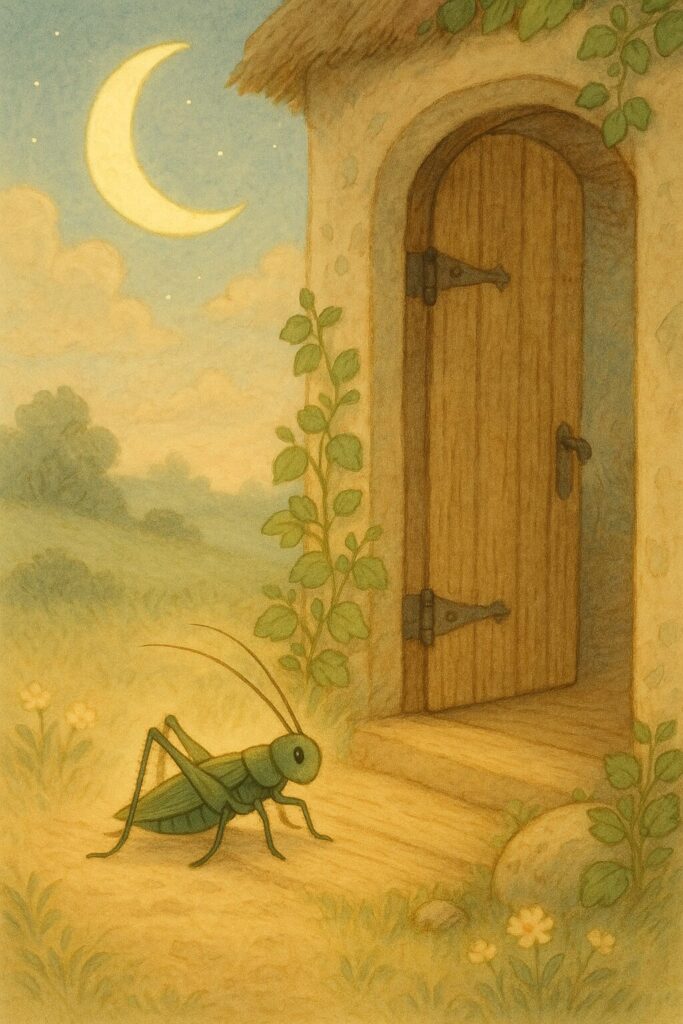 ただひとつ──戸口のそばで、ひとりのキリギリスが震える脚で立っていました。