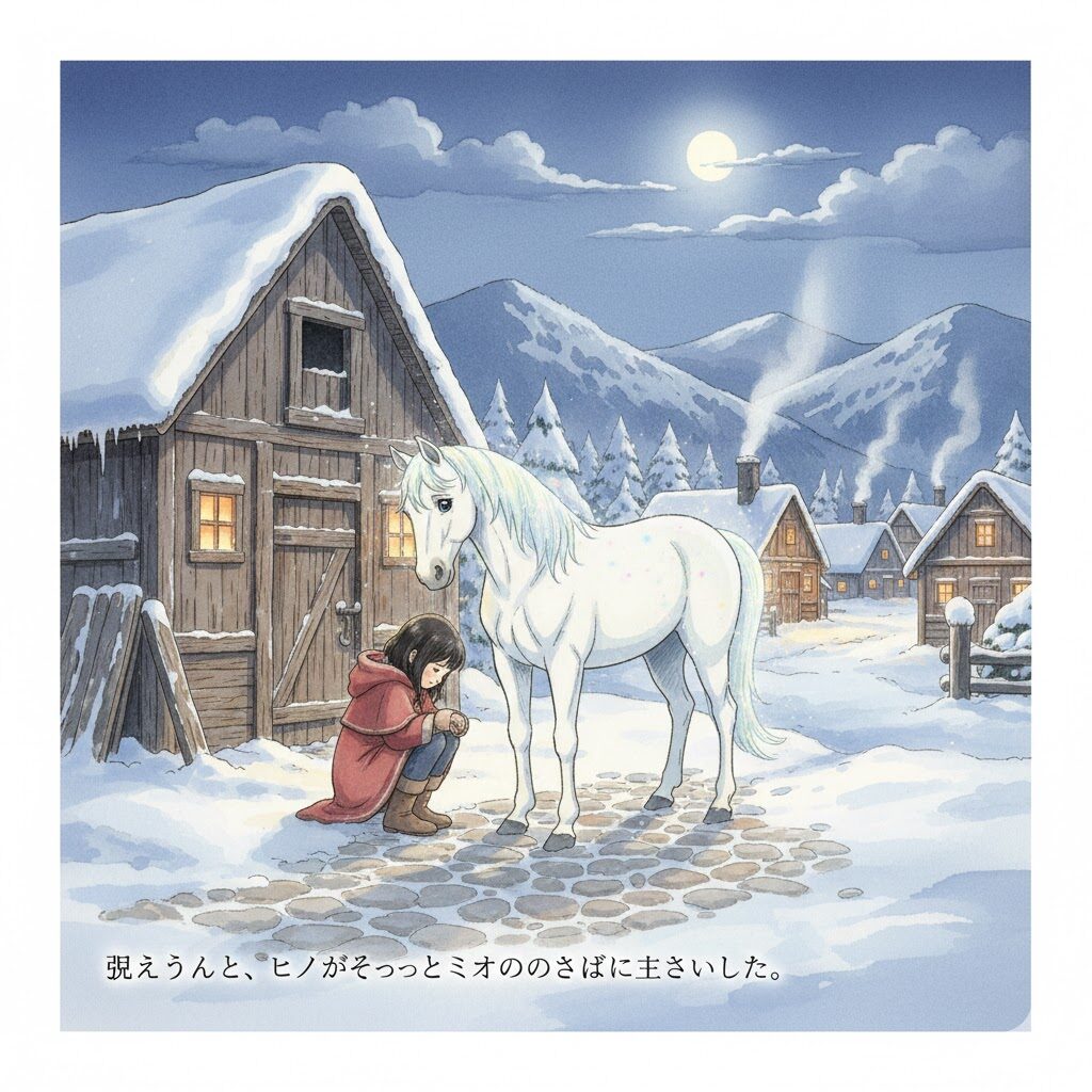 ヒノがそっとミオのそばに立っていました。