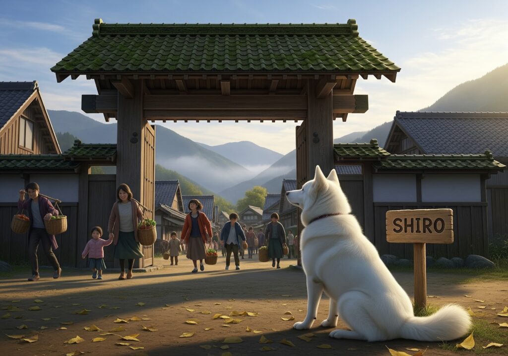 むかしむかし、静かな山里に、一匹の白い犬が住んでいました。