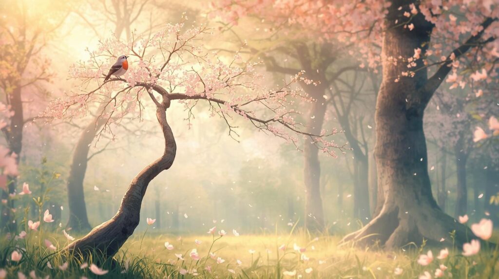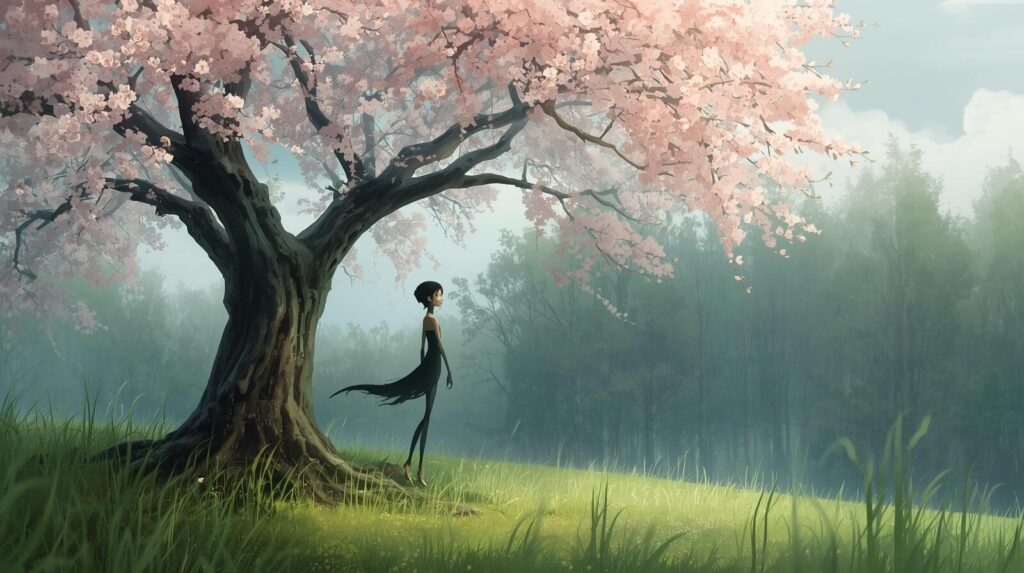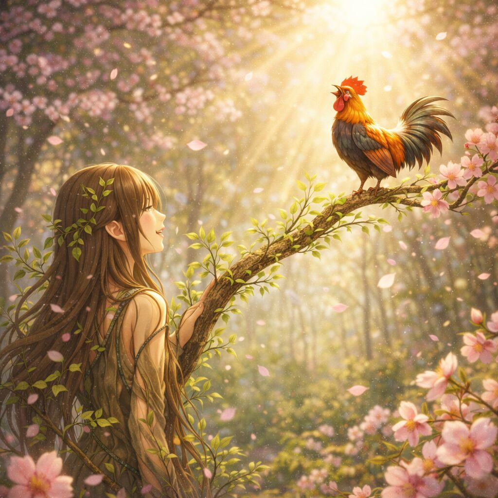 その森に、**乙(きのと)**という若い木の精が住んでいました。