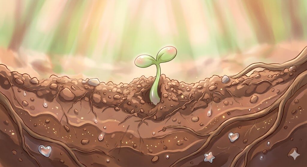 春の土の中で、小さな芽がゆっくりと動きはじめるころ。