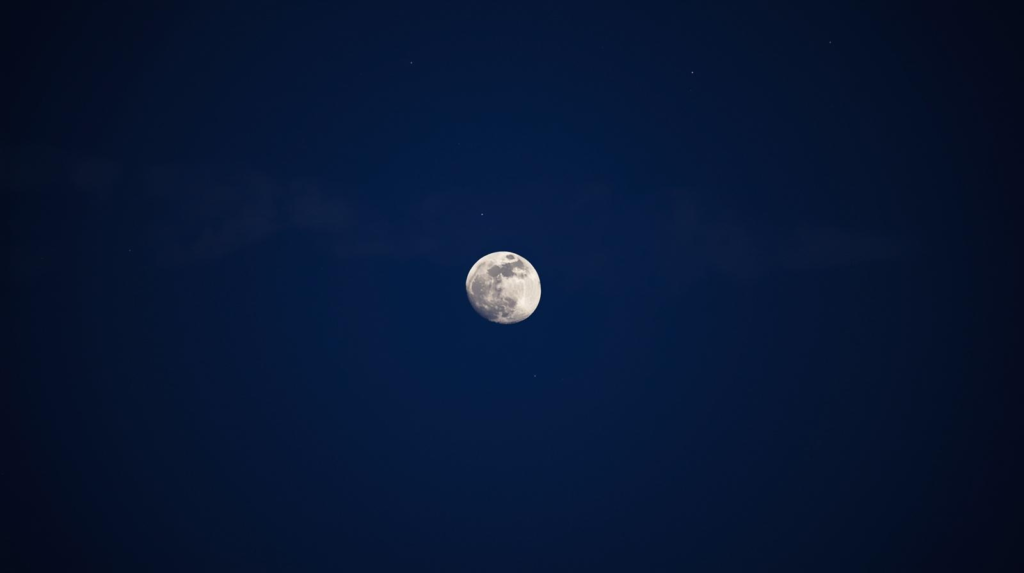 静かな曇り空に、満ちゆく月が輪郭を見せる日。