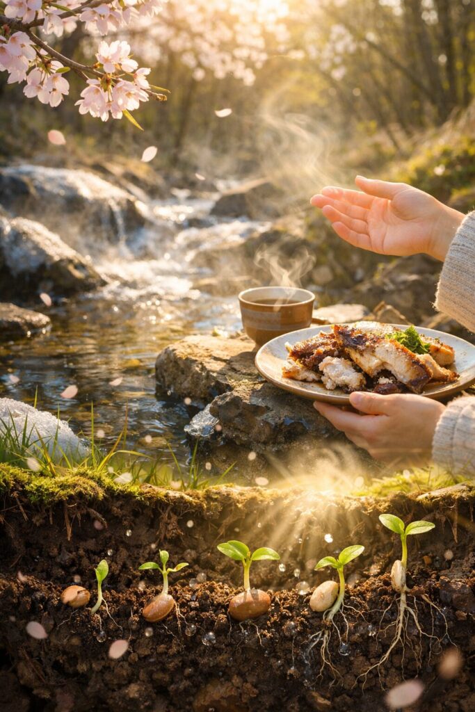 春の祝い魚は、これからの芽吹きを後押しします。
