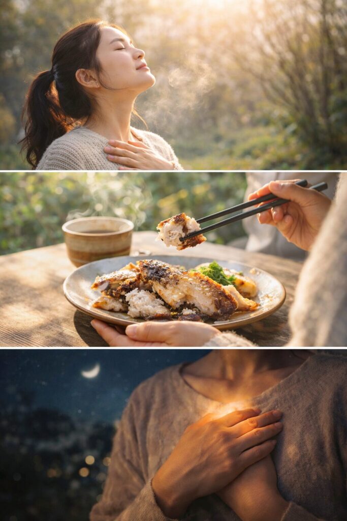食べものをゆっくり味わい、