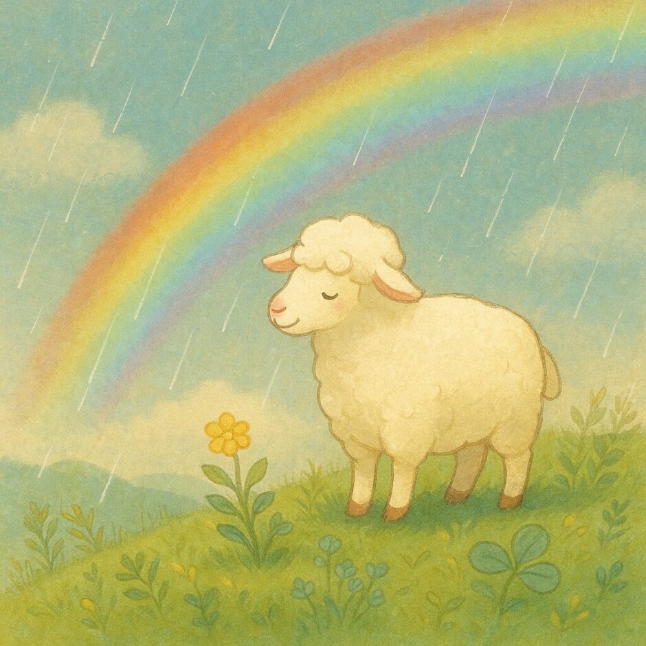 丘の上では、一匹の白いひつじが空を見上げていました。