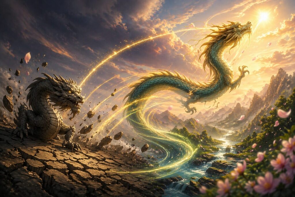 龍は、大地にそっと触れた。