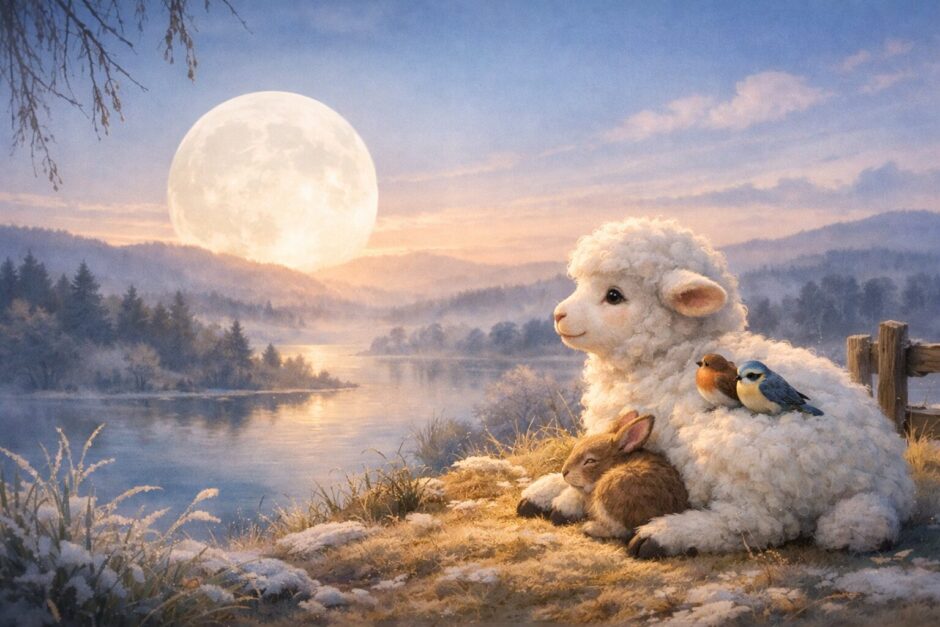 満月の光がまだ空にやさしく残る朝のおはなしです。