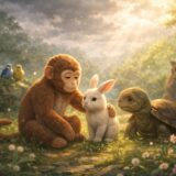 鳥たちはルナの背中のあたたかさに包まれて、安心した顔になりました。