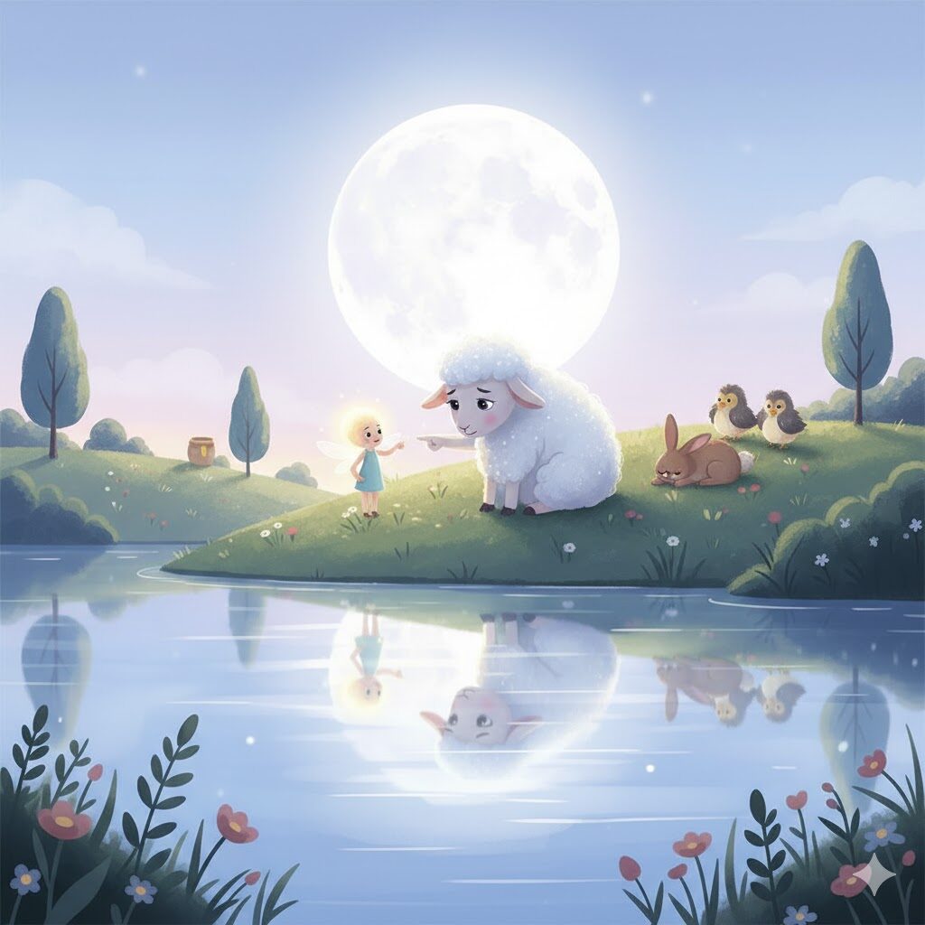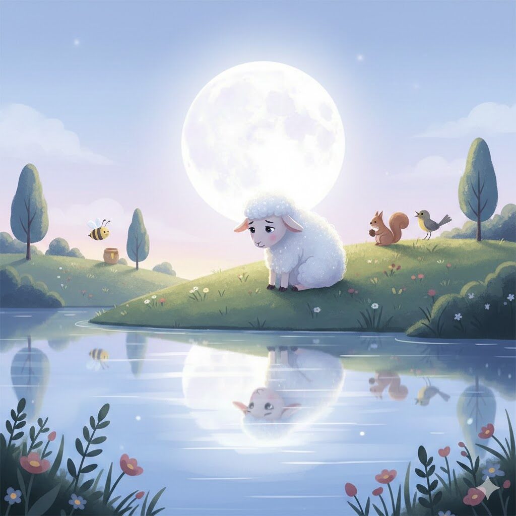 ルナはしょんぼりしながら湖のほとりに座っていました。