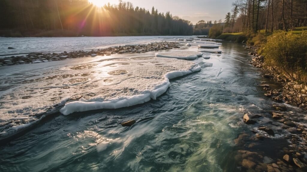 氷が溶けると、川は自然に流れ出す。
